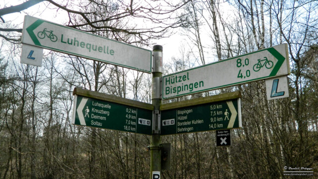 Munster-Nord durchquert, kam ich Bispingen immer näher und damit auch Soltau. Bispingen habe ich, wenig spektakulär wie es ist, schnell durchschritten. Ein Fitness- und Erlebnispfad führte mich weiter zur Luhequelle. Wo man auch einen Stempelkasten des Europäischen Fernwanderweges E1 findet.